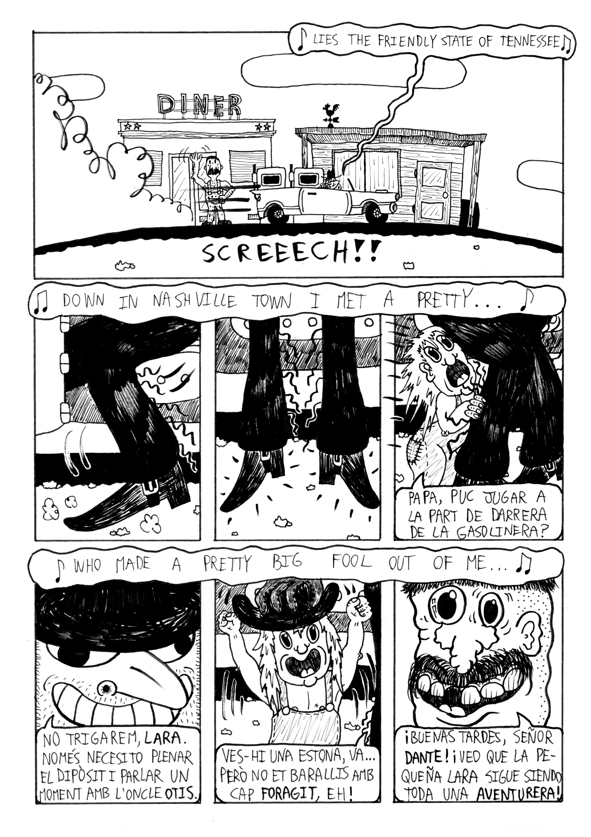 Pero cuando ha llegado el momento de sentarme a definir un árbol genealógico del personaje (y las circunstancias que la llevaron de Igualada al desierto de Chihuahua) me he dado cuenta de que tengo una historia intimidantemente expansiva entre manos… No sé cuantas partes e interludios va a tener esta aventura, pero sí puedo confirmar que el siguiente llegará a mediados de abril con el inminente fanzine colaborativo CENCIERO 3. ¡Y, para ir abriendo boca, he decidido enseñar, en absoluta primicia, las dos primeras páginas del tebeo!